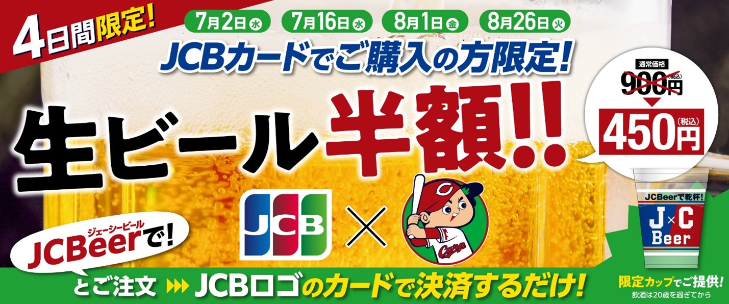 生ビールが半額(900円→450円)となるキャンペーン(「JCBeer」生ビール半額キャンペーン)